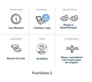 Lentes de contacto Miopia e Hipermetropia Purevision 2 Uso mensual