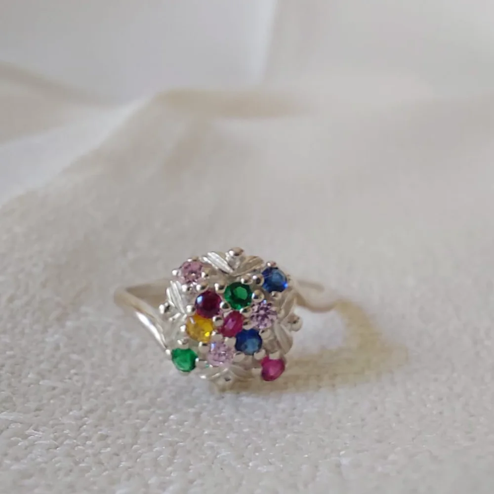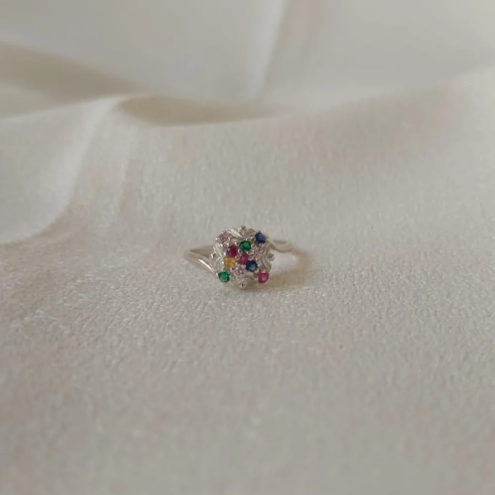 Elegante anillo de plata 925, cuidadosamente elaborado para resaltar su brillo natural. Este diseño incorpora piedras de colores vibrantes, perfectamente engastadas, que añaden un toque de sofisticación y alegría. Las piedras, de tonos variados que van desde el profundo azul zafiro hasta el Radiante verde esmeralda y el cálido rosa, reflejando la luz de manera espectacular, creando un juego de colores cautivador Ideal para cualquier ocasión, este anillo combina elegancia clásica con un estilo moderno, convirtiéndose en el accesorio perfecto para realzar tu look.