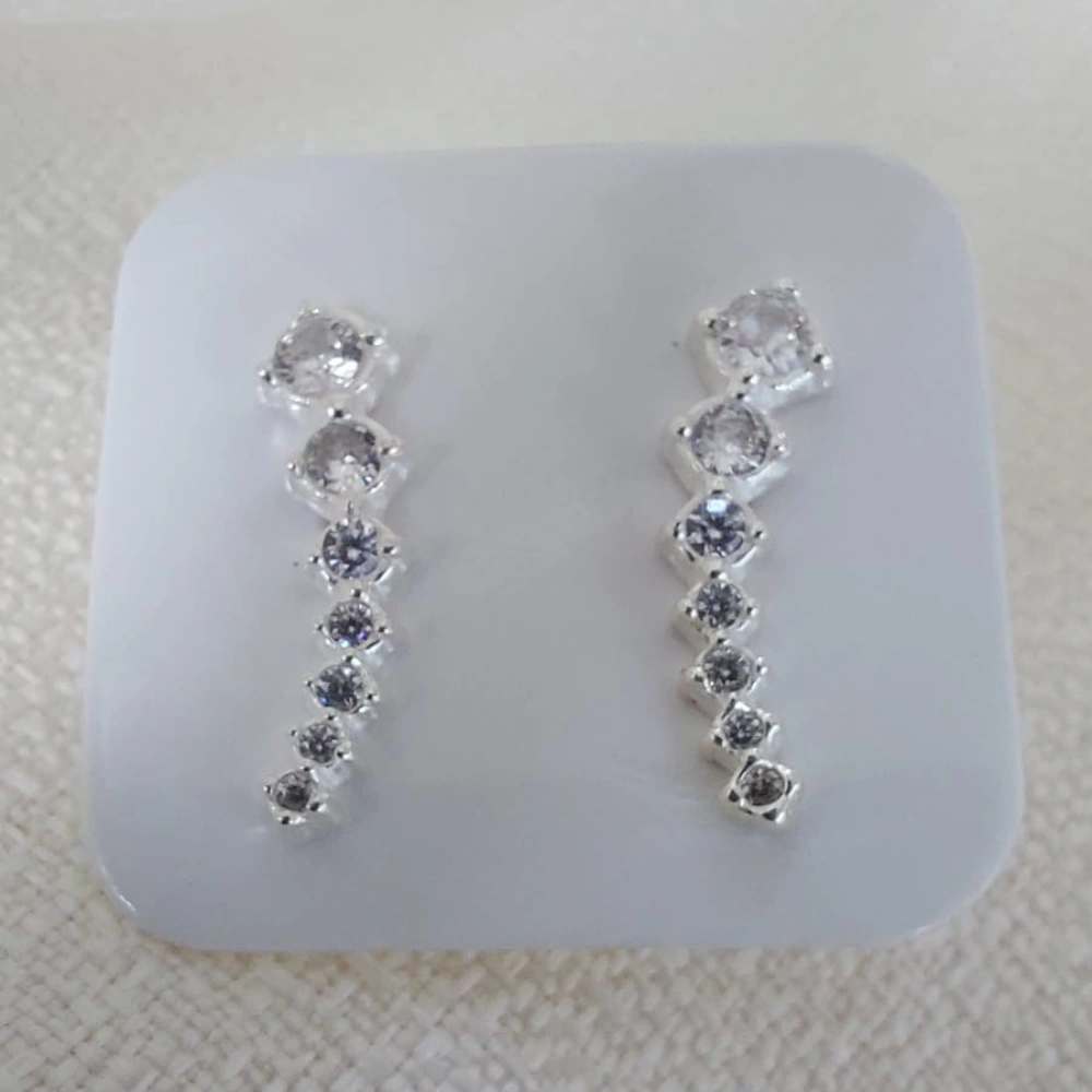 Estos impecables aros están confeccionados en plata 925 de alta calidad, destacando por su diseño sofisticado y atemporal. A lo largo de su estructura, se alinean delicadamente 7 piedras blancas de corte brillante, creando un efecto de luz y resplandor que realza cualquier look.